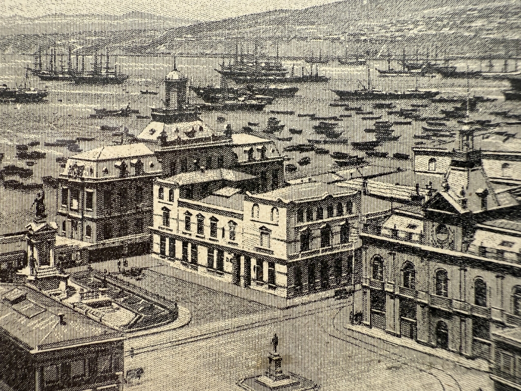 Vista de la ciudad y puerto de Valparaíso (Chile, América del sur), hacia 1880. Anónimo