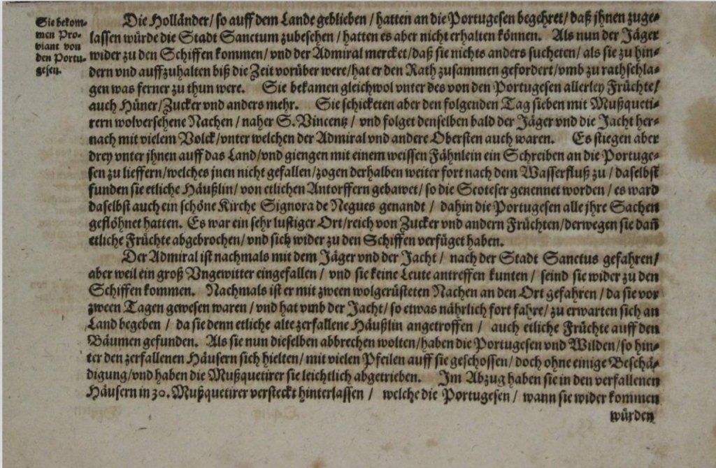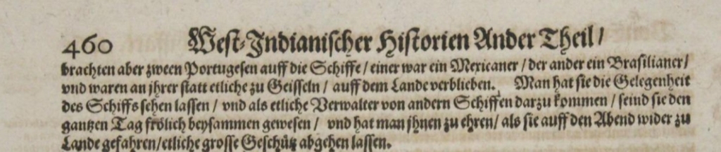 Fuente: Historia Antipodum oder Newe Welt. Esto es: Natur vnd Eigenschafft dess halben theils der Erden, so West Indien genennt wird der Elemeten Beschöpffen Nationen vnd Inwohner, und wie diss alles durch mancherley Schiffahrten entdecket worden, mit fleiss zusammen getragenn durch, Johann Ludwig Gottfrid. Mit Landtafeln vnd Kupfferstücken gezieret und verleget durch Matthæum Merian 1631.