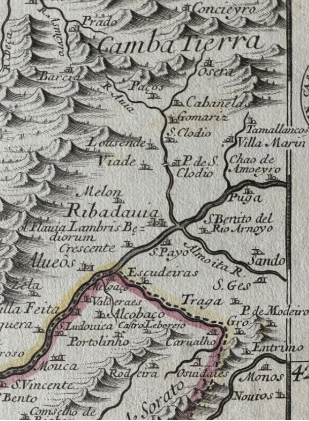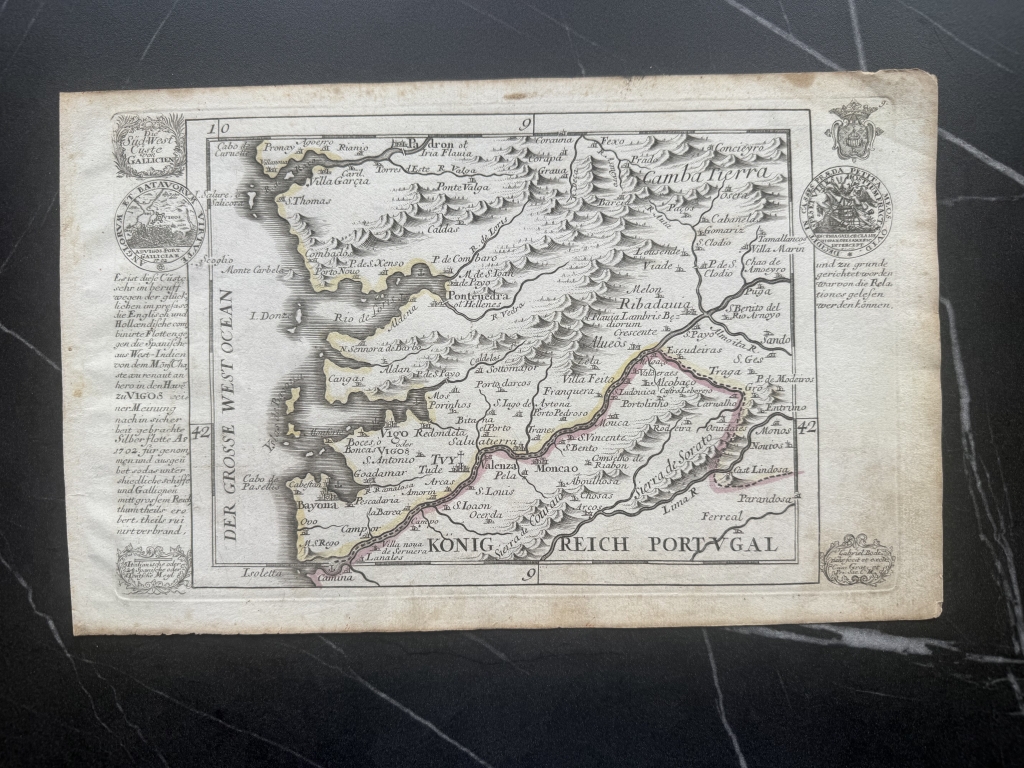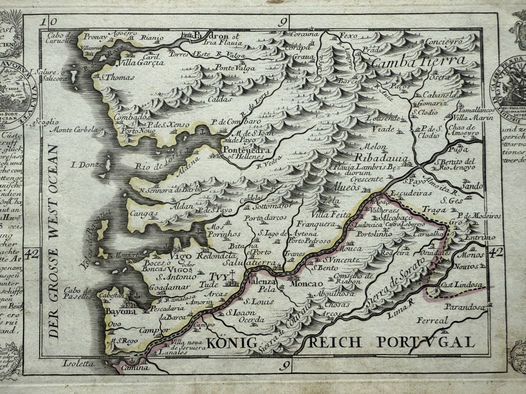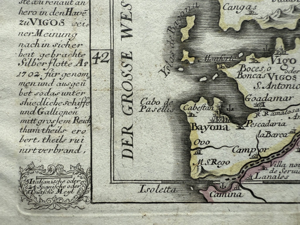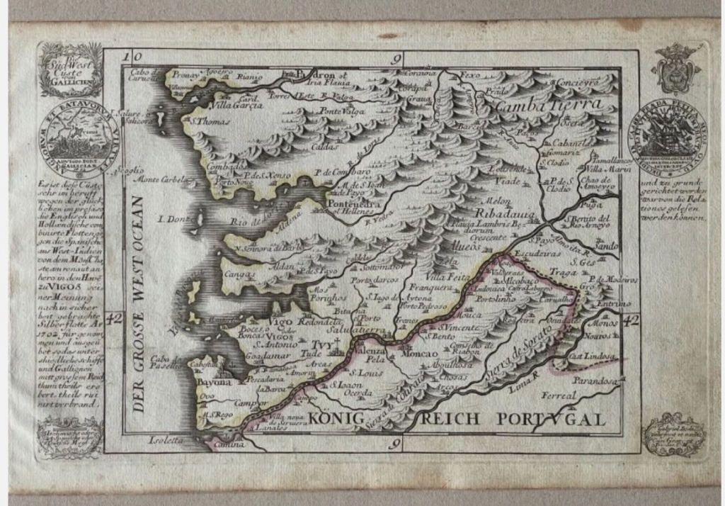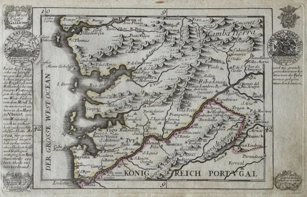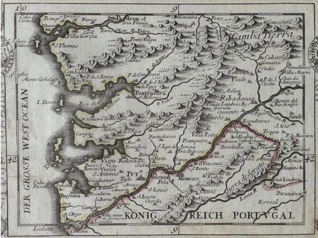 Mapa de la costa sudoeste de Galicia (España), hacia 1720. G. Bodenehr/Stridbeck
