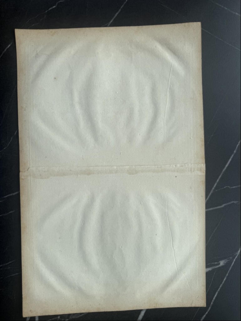 Estado de conservación: Impresión muy nítida y oscura sobre papel de gran gramaje. Papel con cadenas. Mapa sin colorear. Márgenes amplios. Ligeras manchas de óxido y amarilleamiento. Mapa doblado. En general, buen estado.