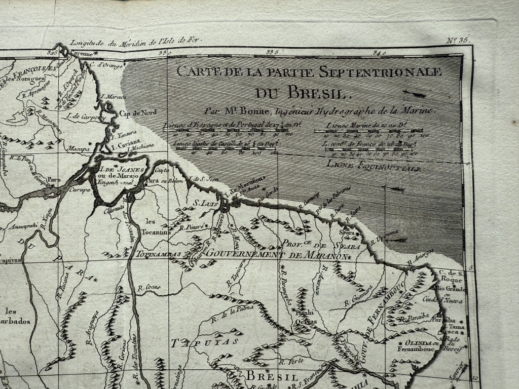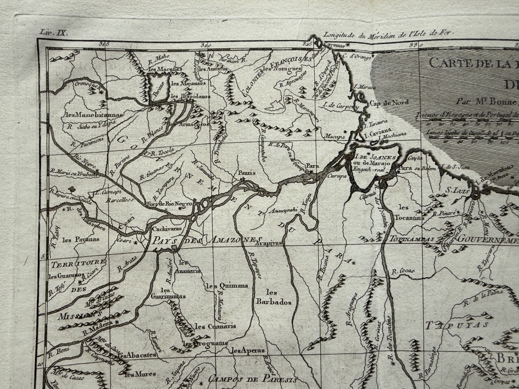 Mapa del norte de Brasil, 1780. Bonne/Raynal