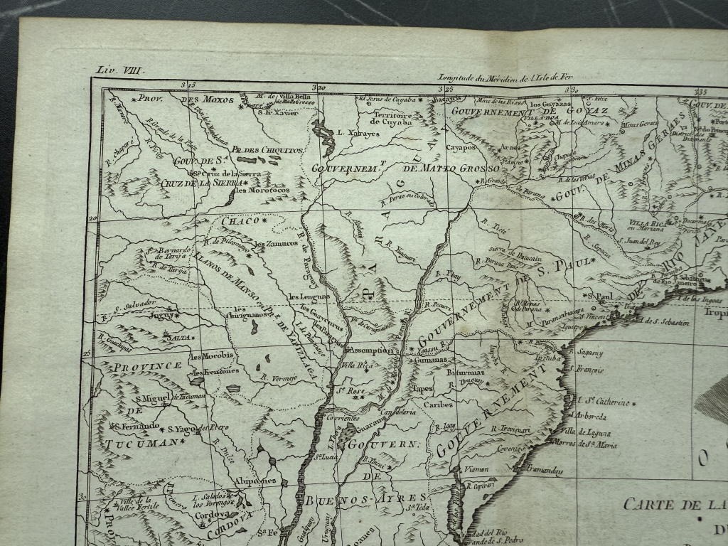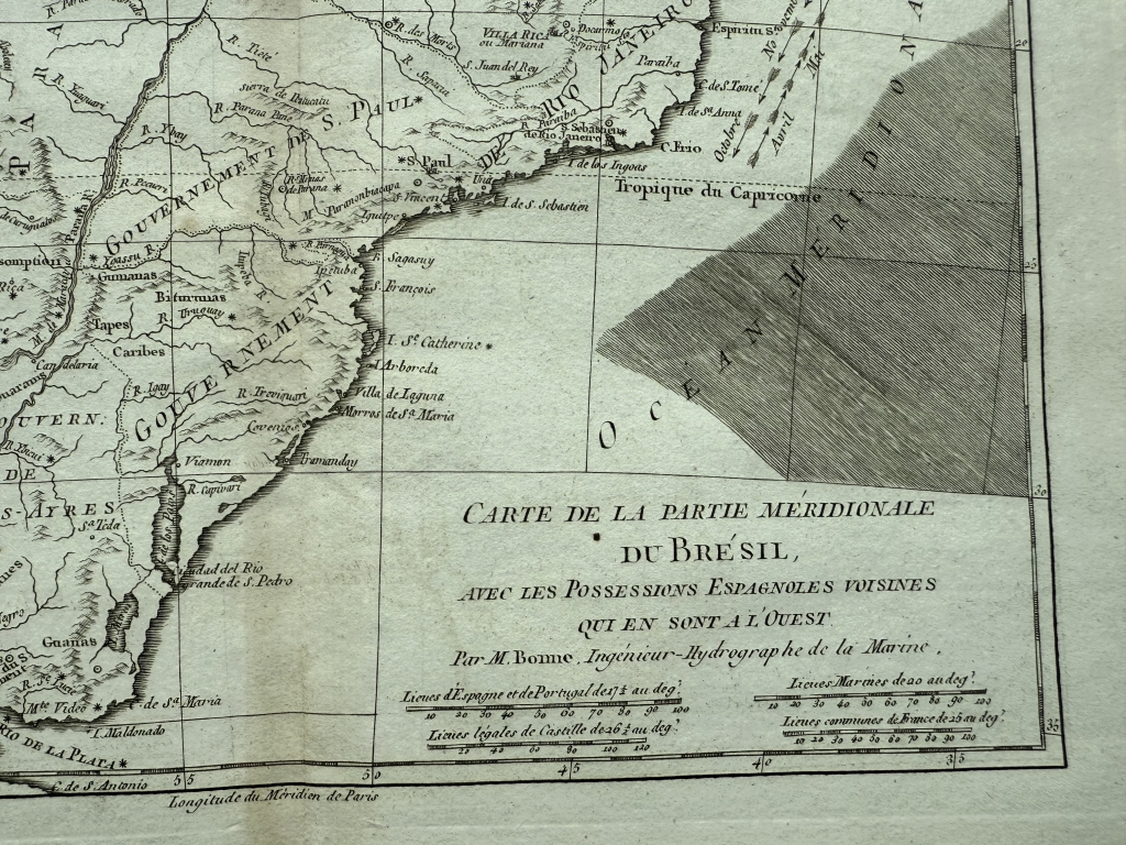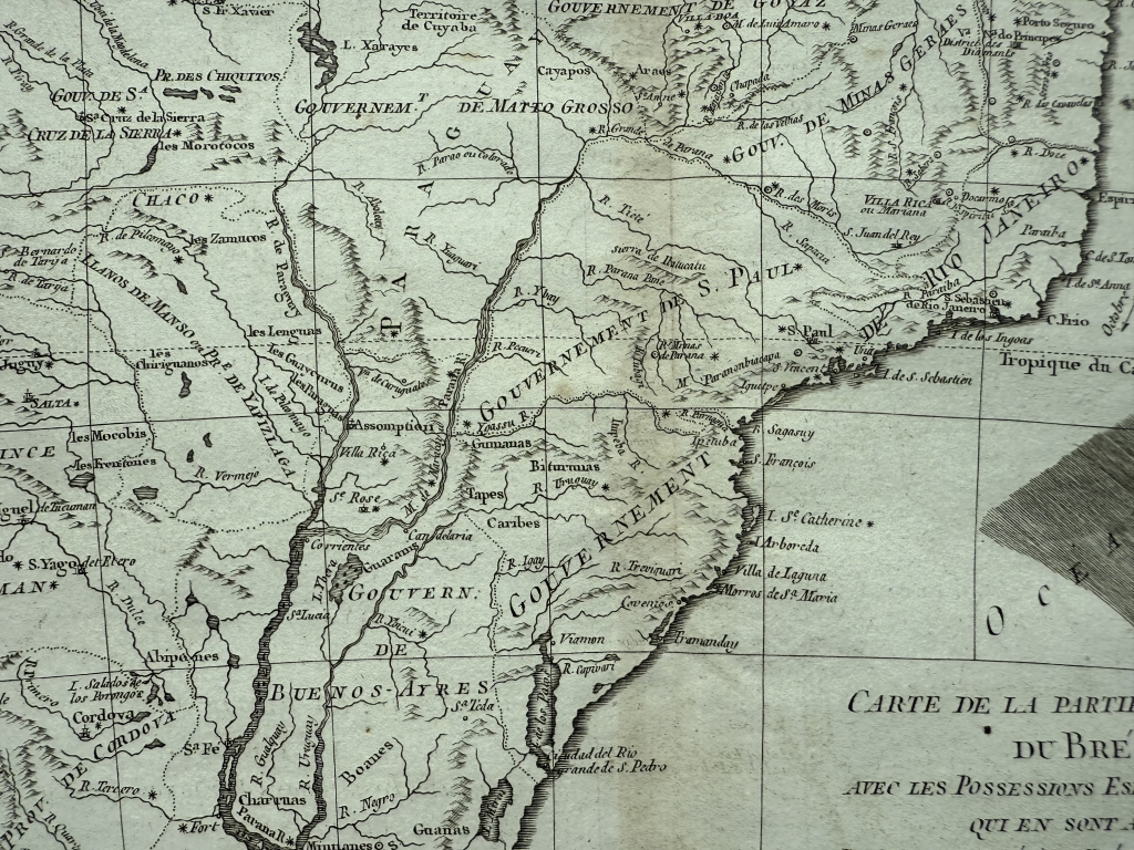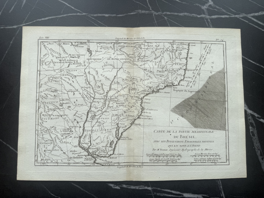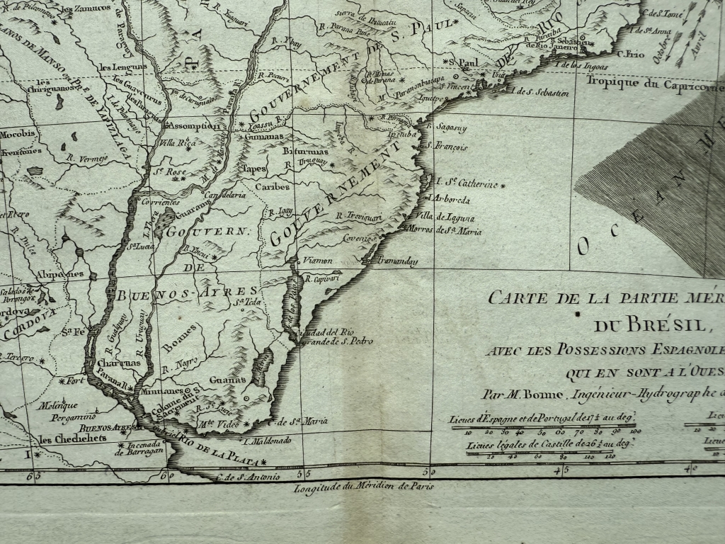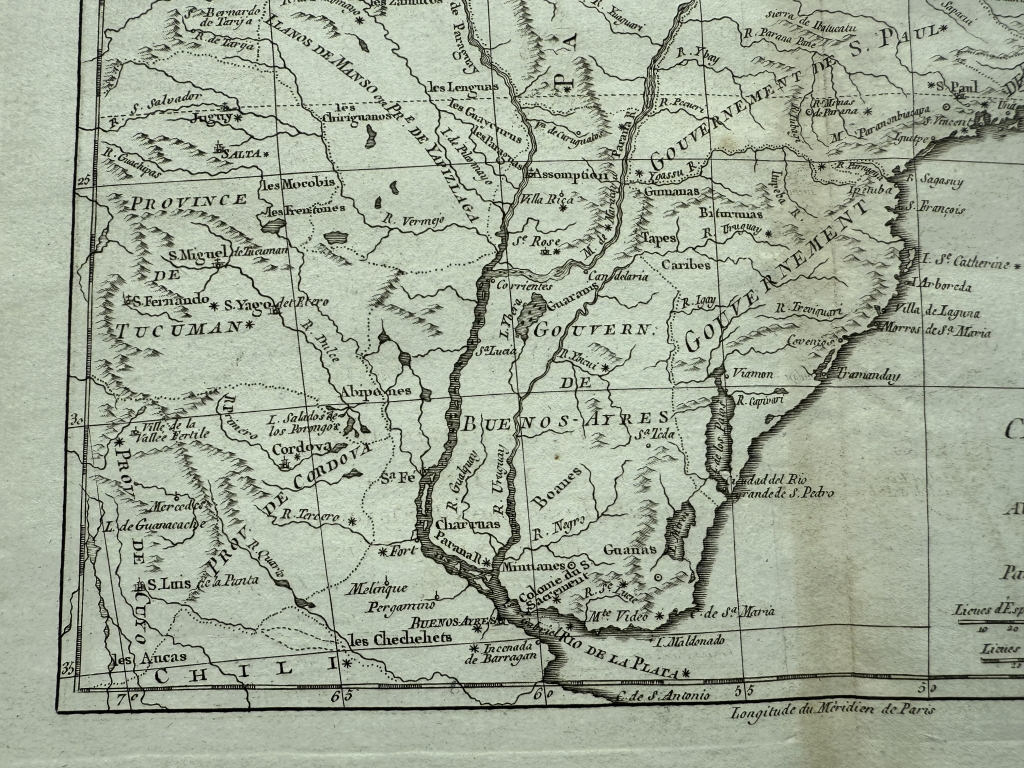 Mapa del Sur de Brasil, Uruguay y norte de Argentina, 1775. Bonne/Raynal