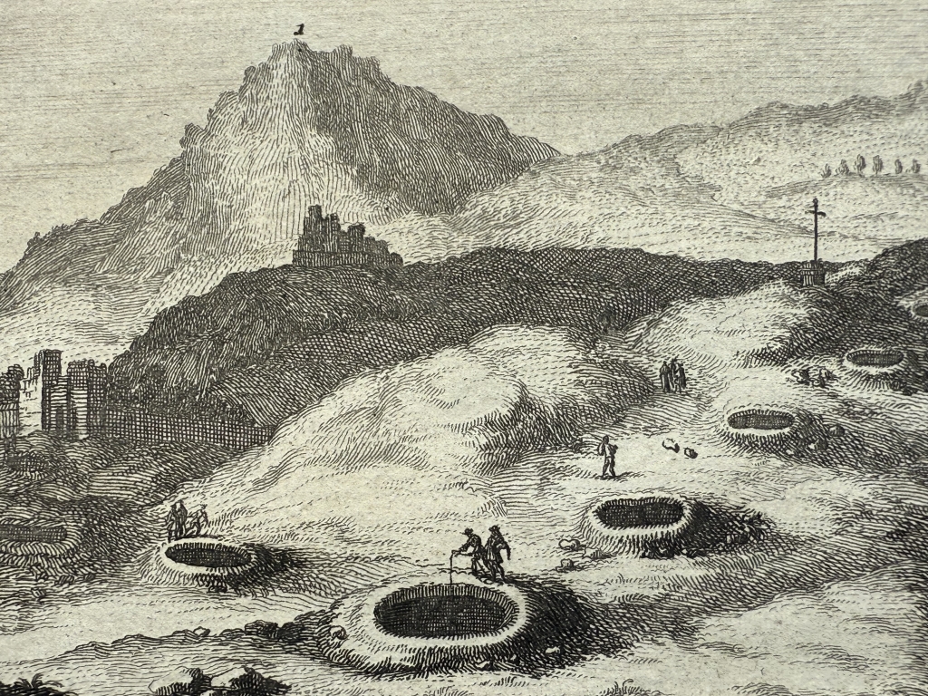 Autor: Juan Álvarez de Colmenar (posible pseudónimo). Pieter van der Aa apareció como editor de la cita con el título “Les delicacies de L'Espagne & du Portugal: [où l'on voit an exactitud descripción des antiquitez, des provincias... de la religión, des moeurs des habitans... le tout enrichi de figures en taille douce, dessinées sur les lieux mêmes]. En este caso “Les délices de l'Espagne et du Portugal, se trata la vida y las costumbres españolas y portuguesas, así como descripciones de monumentos y obras artísticas.”, publicado en Holanda, y en la ciudad de Leiden en 1707. Este mismo año apareció la edición francesa de esa obra, que volvería a editarse, también en francés, en 1715 y en 1741 pero en todas las versiones en francés, aparece como autor Juan Álvarez; de Colmenar, tal vez el seudónimo del verdadero autor, quizás de origen francés. Esta es una ilustración con "figuras en talla dulce dibujadas en los mismos lugares por Juan Álvarez de Colmenar".