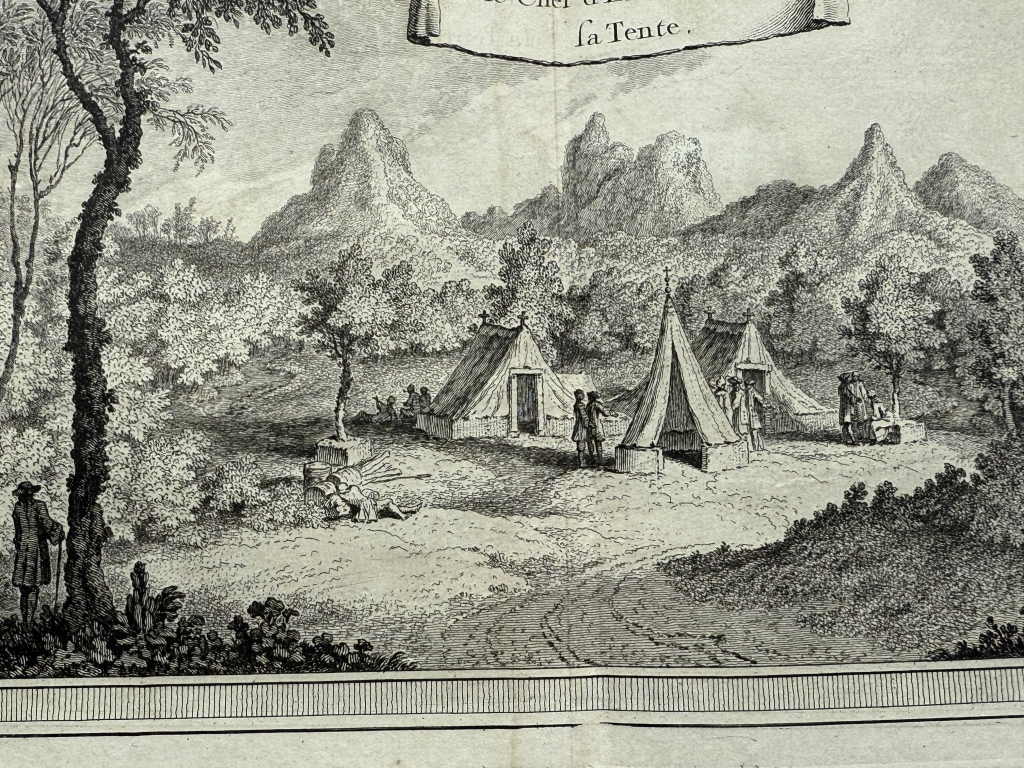 Grabado de placa de cobre extraído de la famosa obra de Prevost, “ Histoire General des Voyages, ou nouvelle collection de toutes les relations de voyages"”, en la cual la mayoría de los mapas y vistas fueron realizadas por Nicolás Bellin. Publicada en Paris en 1754.