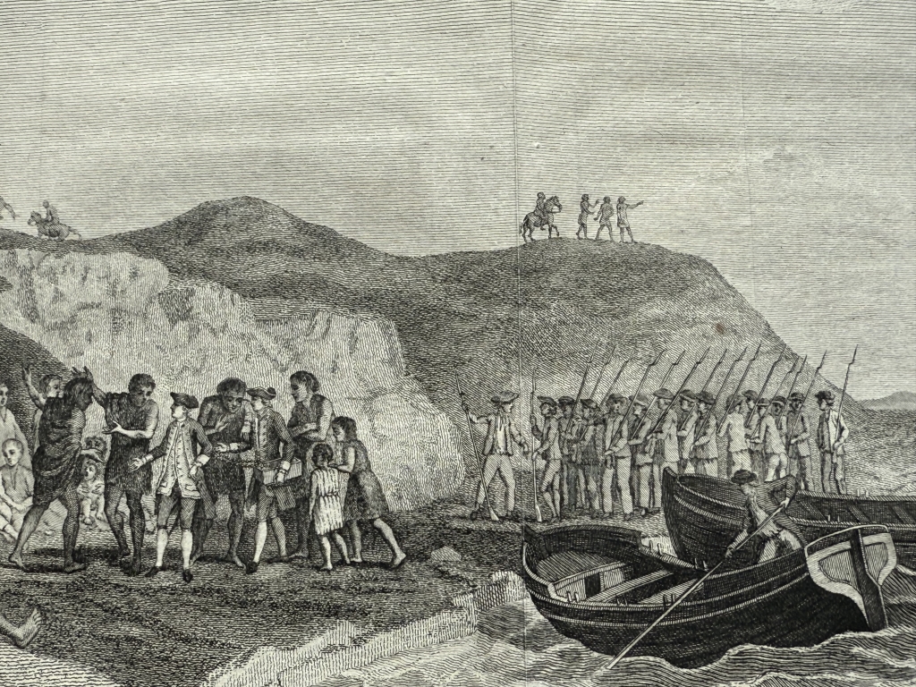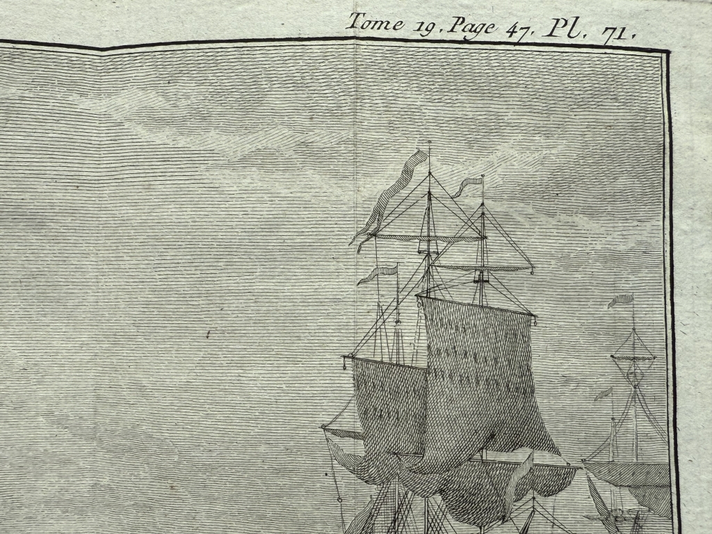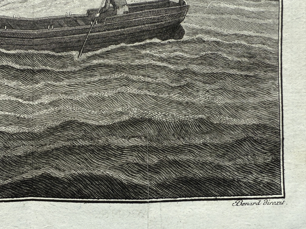 Grabado de placa de cobre de Bernard ( podemos leer su nombre en el margen inferior-derecho), extraído de la famosa obra sobre el viaje de James Cook (1728-1779) publicado hacia 1765.