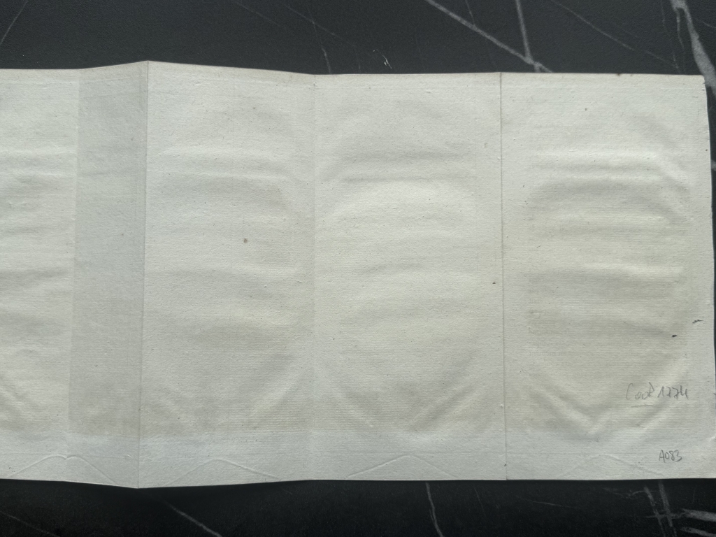 Su estado de conservación es bueno, con fuerte y oscura impresión, en buen papel verjurado con bella marca de agua geométrica, pliegues verticles originales y buenos márgenes. Ver fotografías