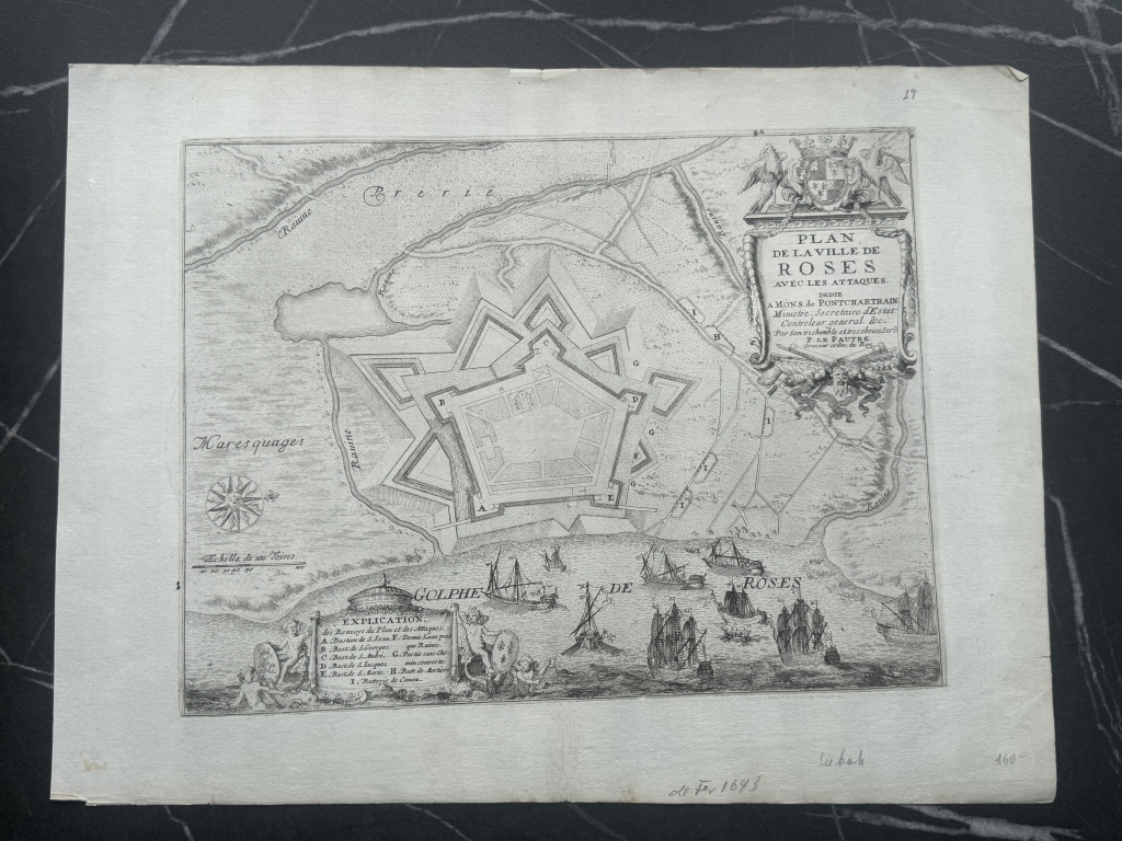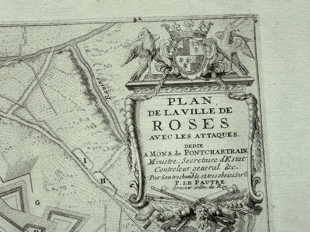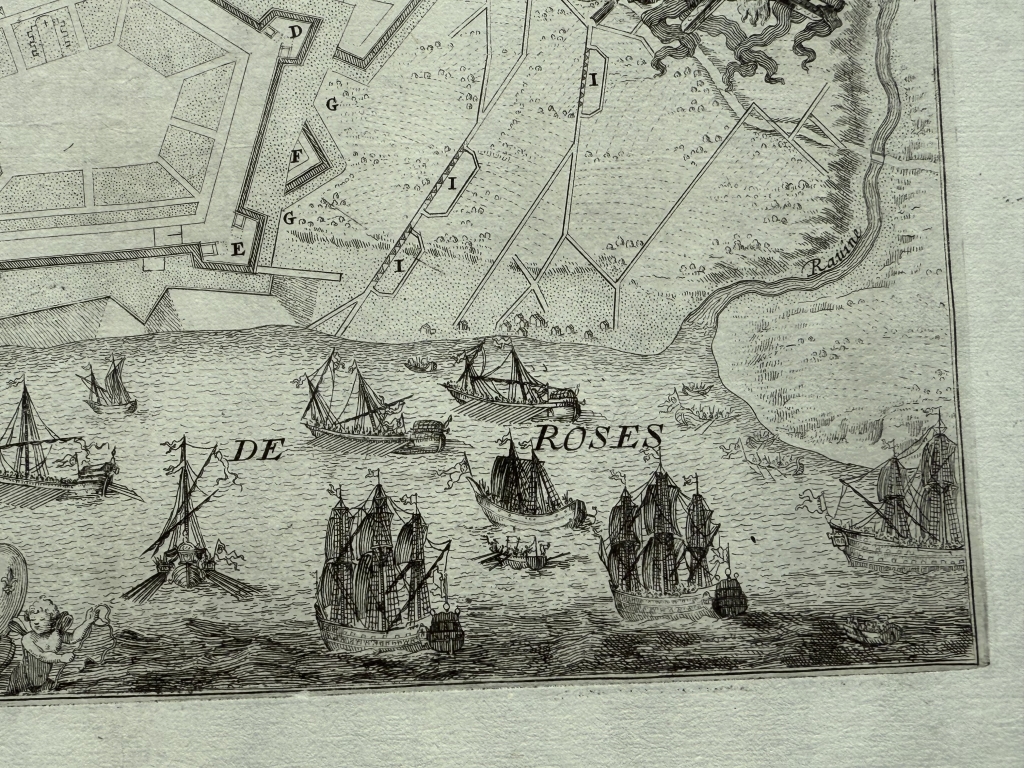 Mapa y vista de la ciudad y puerto de Rosas (Gerona, España), 1693. Nicolás de Fer/ P. de Pautre