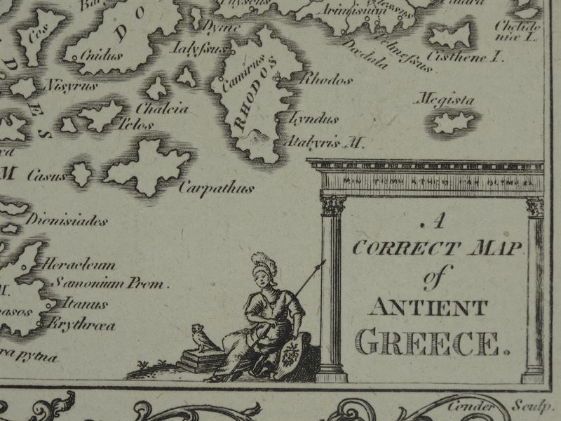 Mapa grabado en placa de cobre, realizado por el geógrafo y grabador,. Thomas Conder, en 1780, titulado "A Correct Map of Ancient Greece".