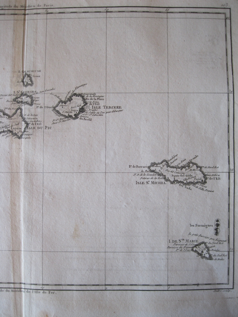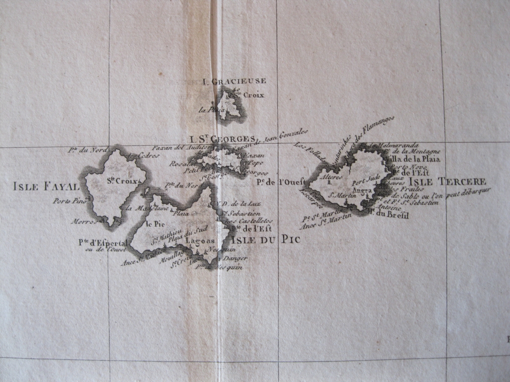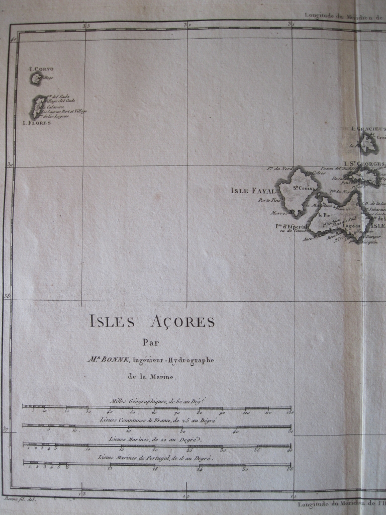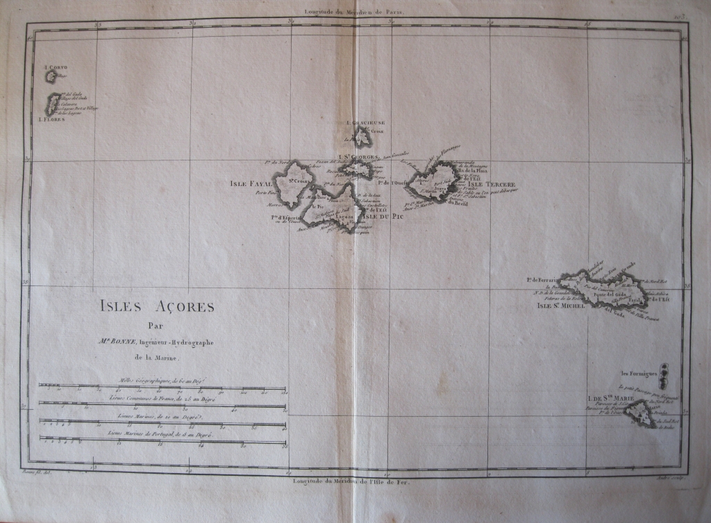 Mapa de las Islas de As Azores (Portugal), 1788. Bonne