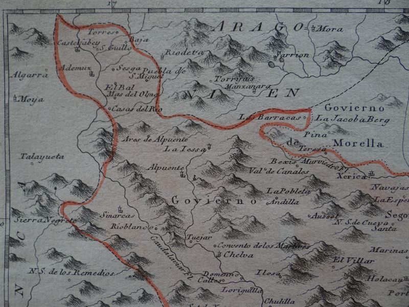 Mapa del norte de Valencia, (España), 1795. Reilly