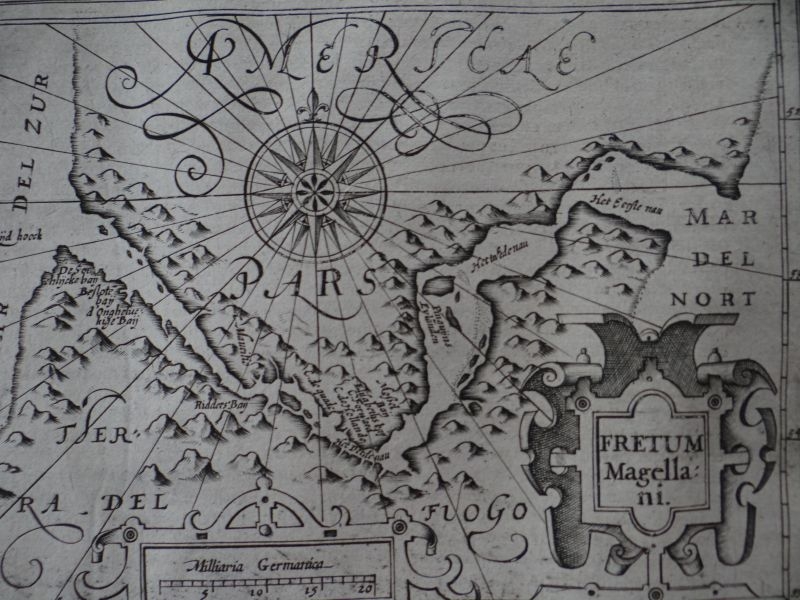 Mapa del Estrecho de Magallanes (Argentina-Chile, Améric del sur) , 1610. Mercator /Hondius