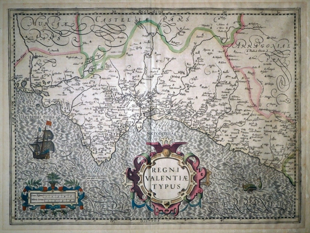 Gran mapa del Reino de Valencia (España), 1610. Hondius/Mercator/Jansonius