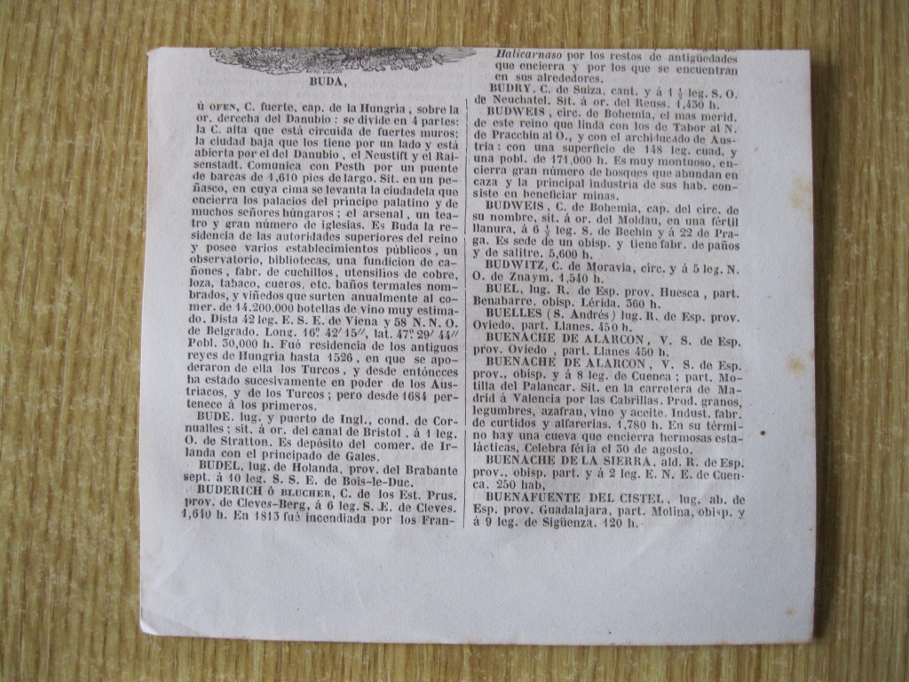 Recorte de una hoja extraída de un diccionario, publicado en el año 1850. Anónimo